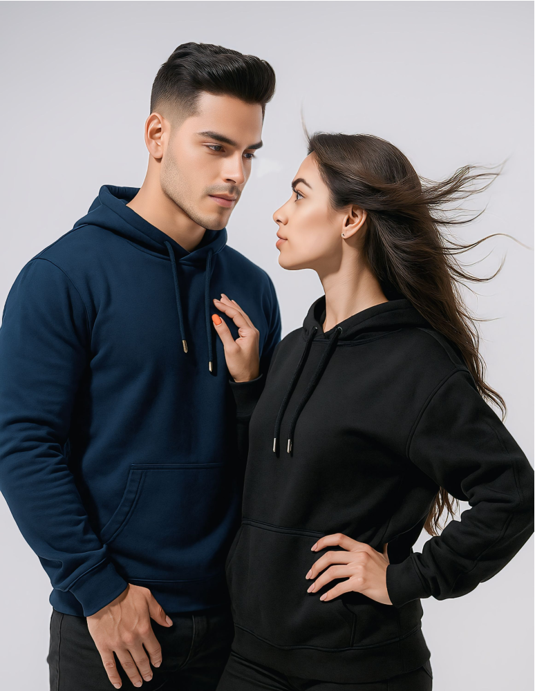 Nuestras poleras son súper cómodas, hechas de franela polialgodón reactivo compactado, ¡perfectas para mantenerte abrigado! Disponemos de poleras con cuello redondo, con capucha y bolsillo canguro, y también las de manga rangla. ¡Elige la que más te guste!